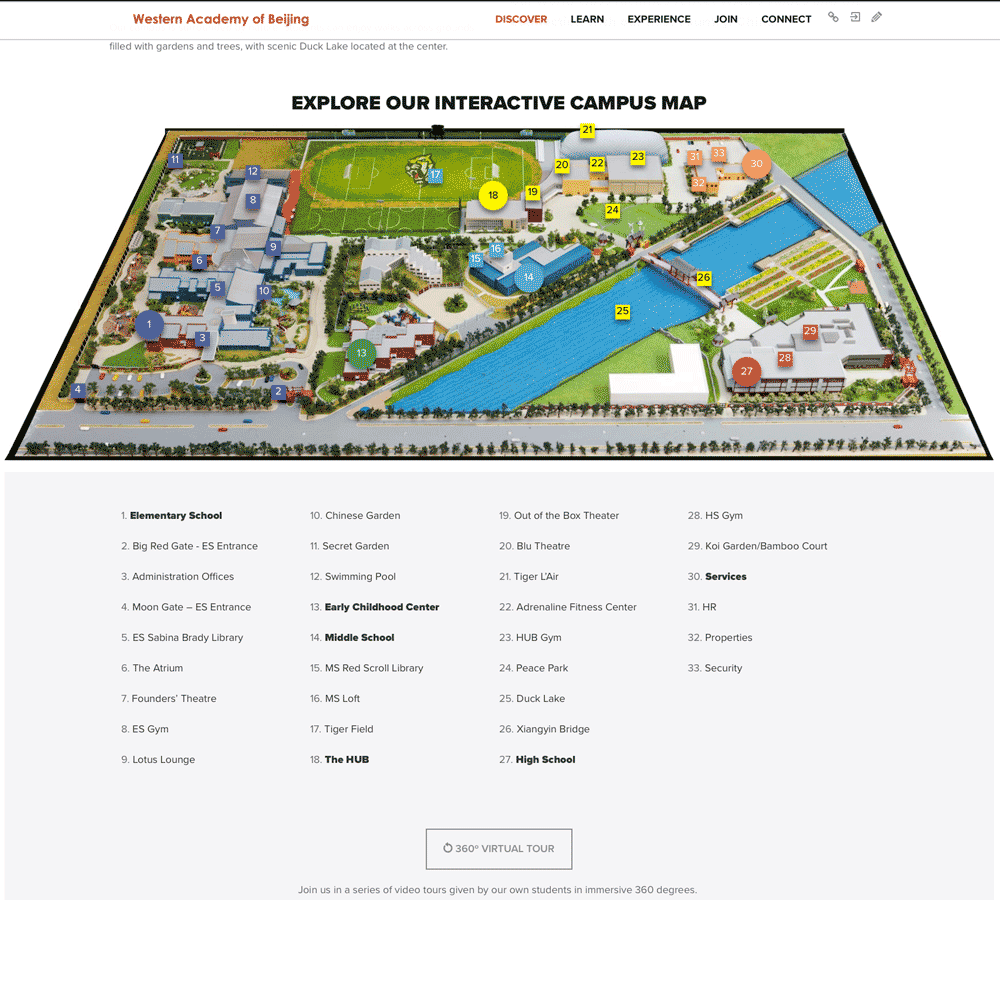 I also developed supporting graphics and illustrations for the site, including a new campus map (above) that aligned with the updated color system and reinforced brand coherence.